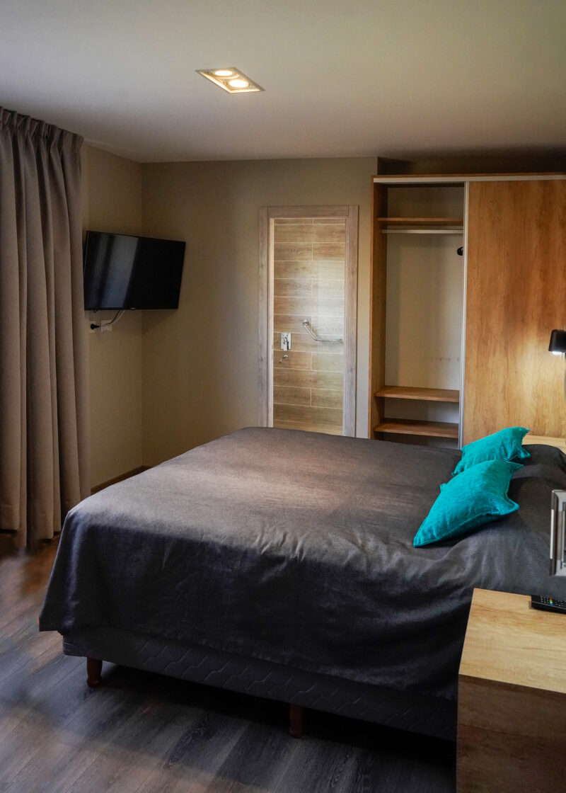 Son habitaciones totalmente renovadas, con espacios más amplios, pensados en la comodidad de nuestros pasajeros. Cuentan con una cama hotelera matrimonial (1.60 x 1.90) y una cama twin o bien, 3 camas twin (0.80 x 1.90), baño privado completo (con mampara y ducha), secador de pelo, TV por cable LED 24”, armario con perchero, ropa blanca y amenities.