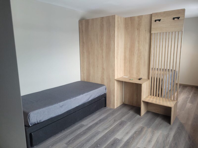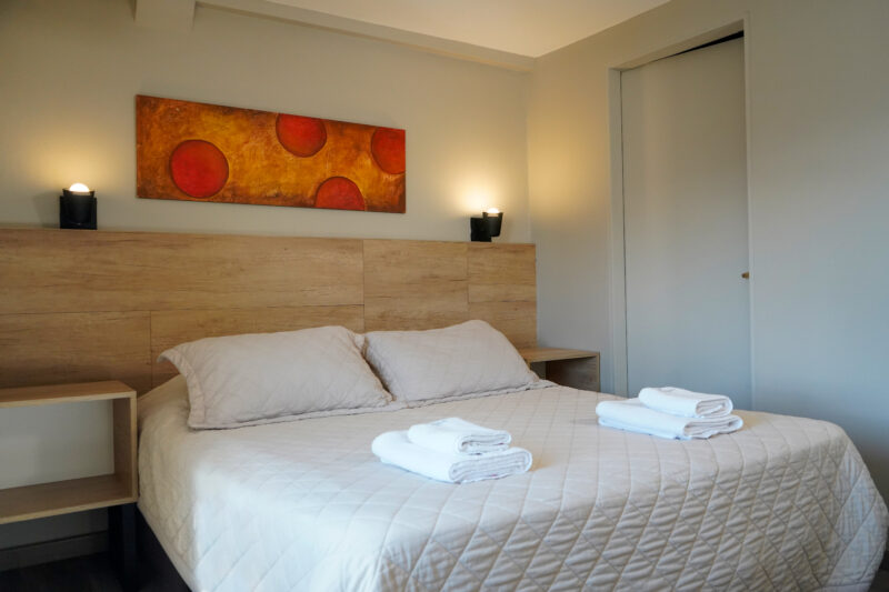 Cuentan con cama hotelera matrimonial (somier de 1.60 x 1.90) o dos camas twin (somieres de 0.80 x 1.90) y en el caso de la habitación Studio Family también se suma una antesala con cama marinera o carry. Tiene baño privado completo (con ducha y mampara), secador de pelo, TV por cable LED 32”, armario con perchero, ropa blanca y amenities.