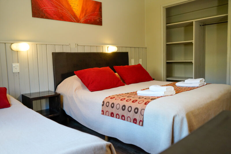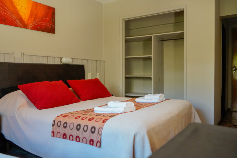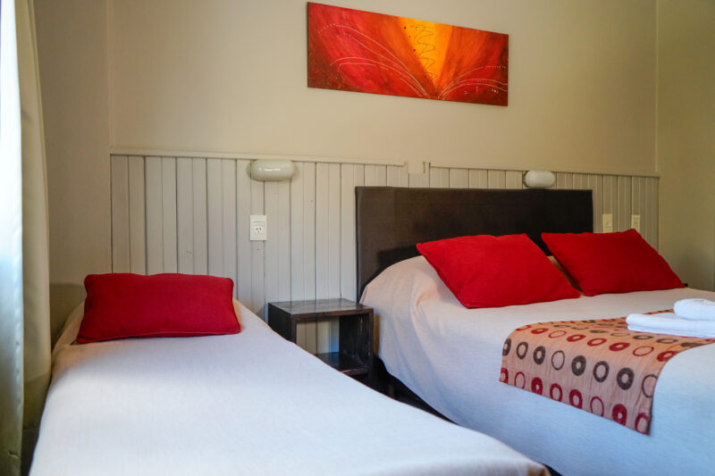 En estas habitaciones, pueden alojase cómodamente hasta tres personas adultas. Cuentan con una cama hotelera matrimonial (1.60 x 1.90) y una cama twin o bien, 3 camas twin (0.80 x 1.90), baño privado completo (con bañera y cortina de ducha), secador de pelo, TV por cable LED 24”, armario con perchero, escritorio con silla, ropa blanca y amenities.